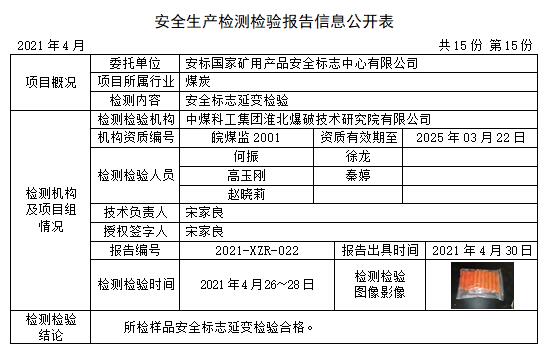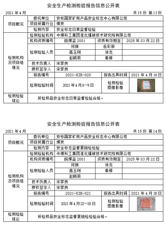 安全生产检测检验报告信息公开表(2021年4月)