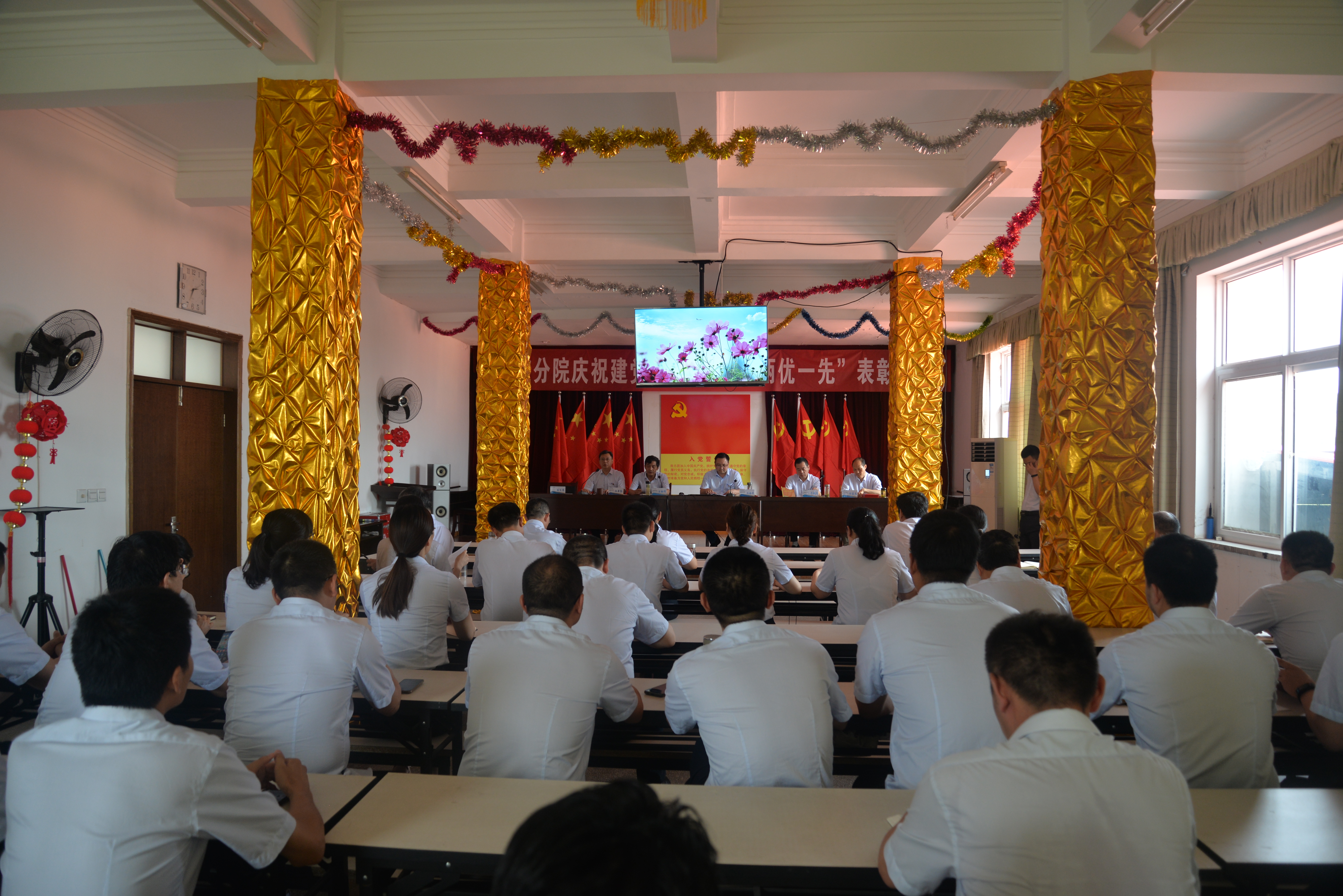 大会在激昂的《国歌》声中隆重开幕。于魏清副院长宣读了分院党委《关于表彰先进党支部、优秀共产党员、优秀党务工作者和共产党员示范岗的决定》,与会领导向获得“两优一先”等光荣称号的集体与个人颁发了荣誉证书并合影留念;在陈金华书记带领下,预备党员进行了庄严的入党宣誓,全体党员重温了入党誓词;潘先峰同志代表优秀共产党员做了激情澎湃、催人奋进的发言。