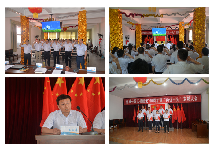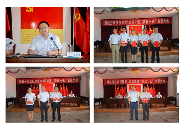 为隆重庆祝中国共产党成立100周年,扎实推进党史学习教育,7月1日,爆破分院召开庆祝建党100周年暨“两优一先”表彰大会,开展了党委书记讲党课、红歌比赛等活动。大会由党委副书记王继峰主持,全体党员统一着装、精神饱满的参加了会议。