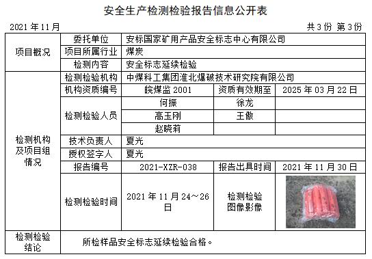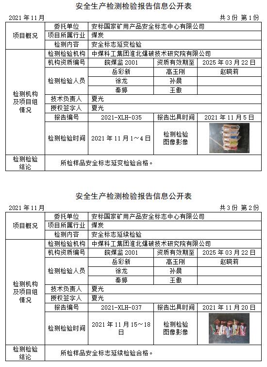 安全生产检测检验报告信息公开表(2021年11月)