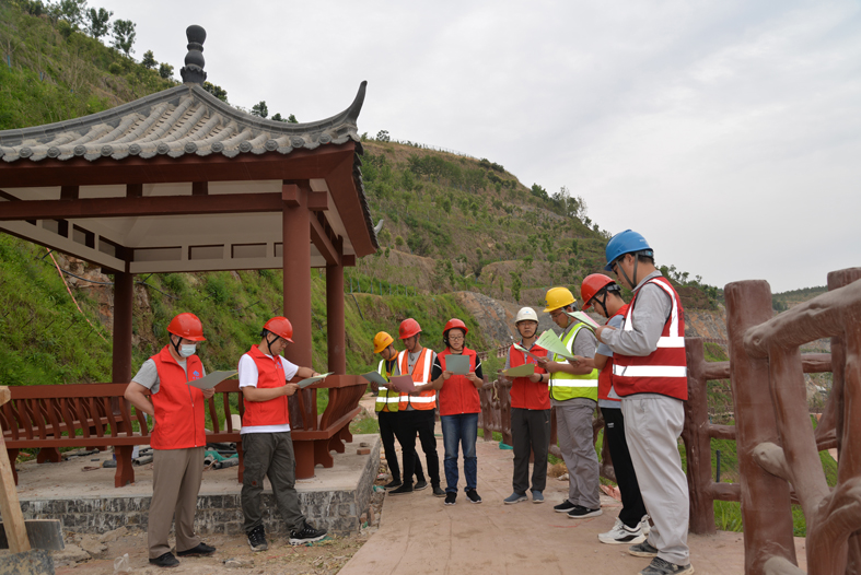 在泉山项目施工现场,突击队长,经营三支部书记张计璨介绍该项目是烈山区重点工程,具体任务是将原来废弃宕口,高陡边坡、断崖,进行削坡减载,形成低台阶、缓边坡,并开挖种植槽,对边坡进行草本类绿植喷播、多种类树木的种植,为淮北市民呈现青山绿水式的泉山公园;同时从爆破施工管理、爆破振动、爆破飞石等技术控制措施方面介绍了安全生产情况。