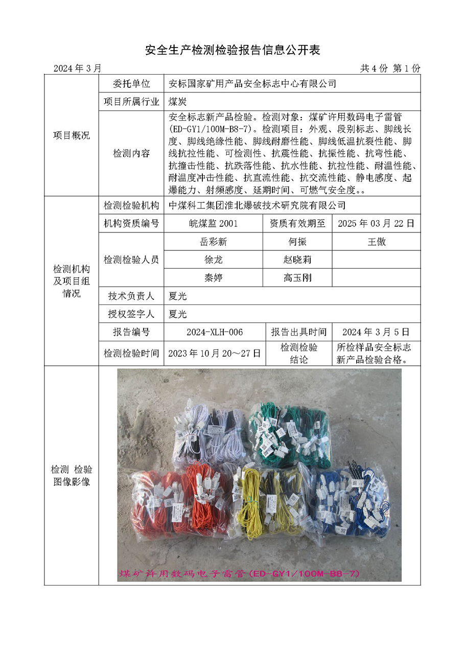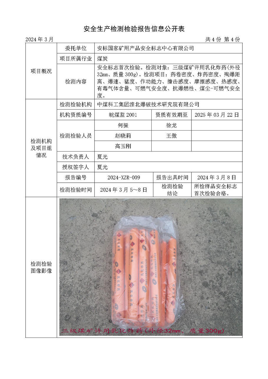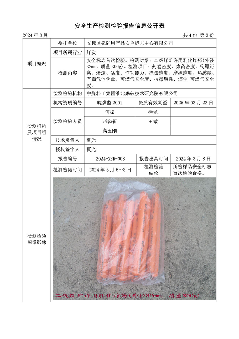 安全生产检测检验报告信息公开表(2024年3月份)