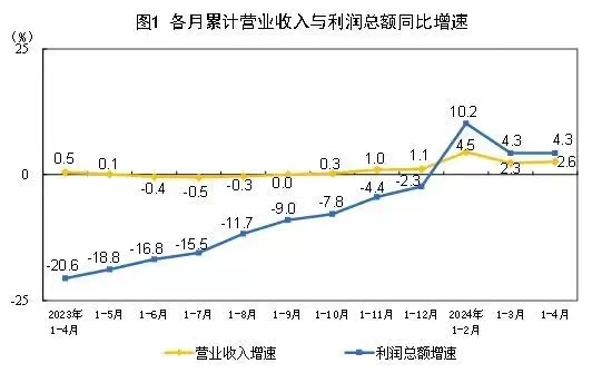 1—4月份,全国规模以上工业企业实现利润总额20946.9亿元,同比增长4.3%(按可比口径计算)。