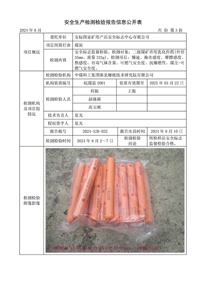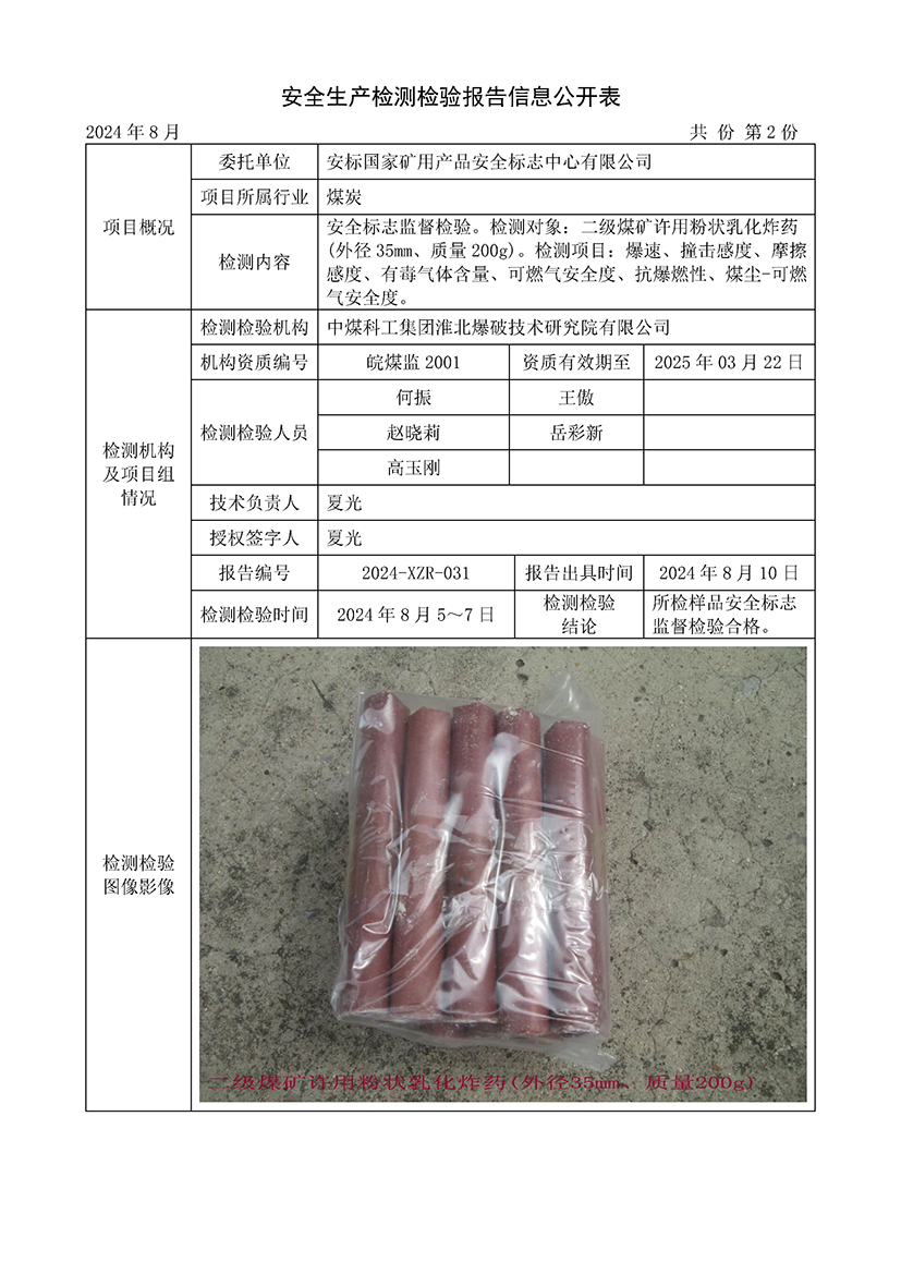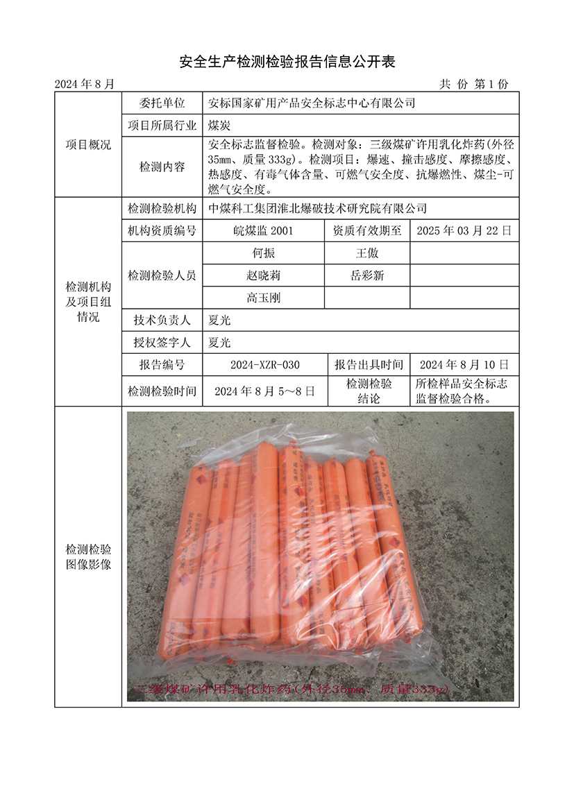 安全生产检测检验报告信息公开表(2024年8月份)