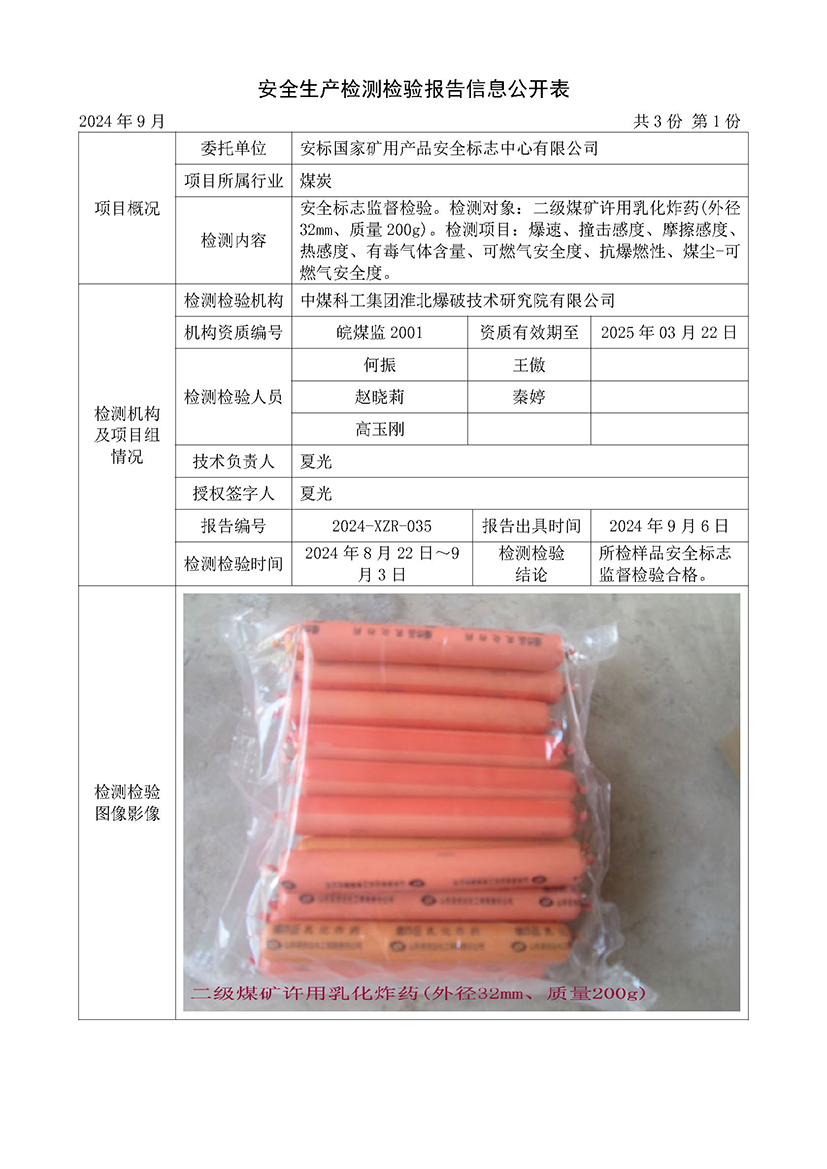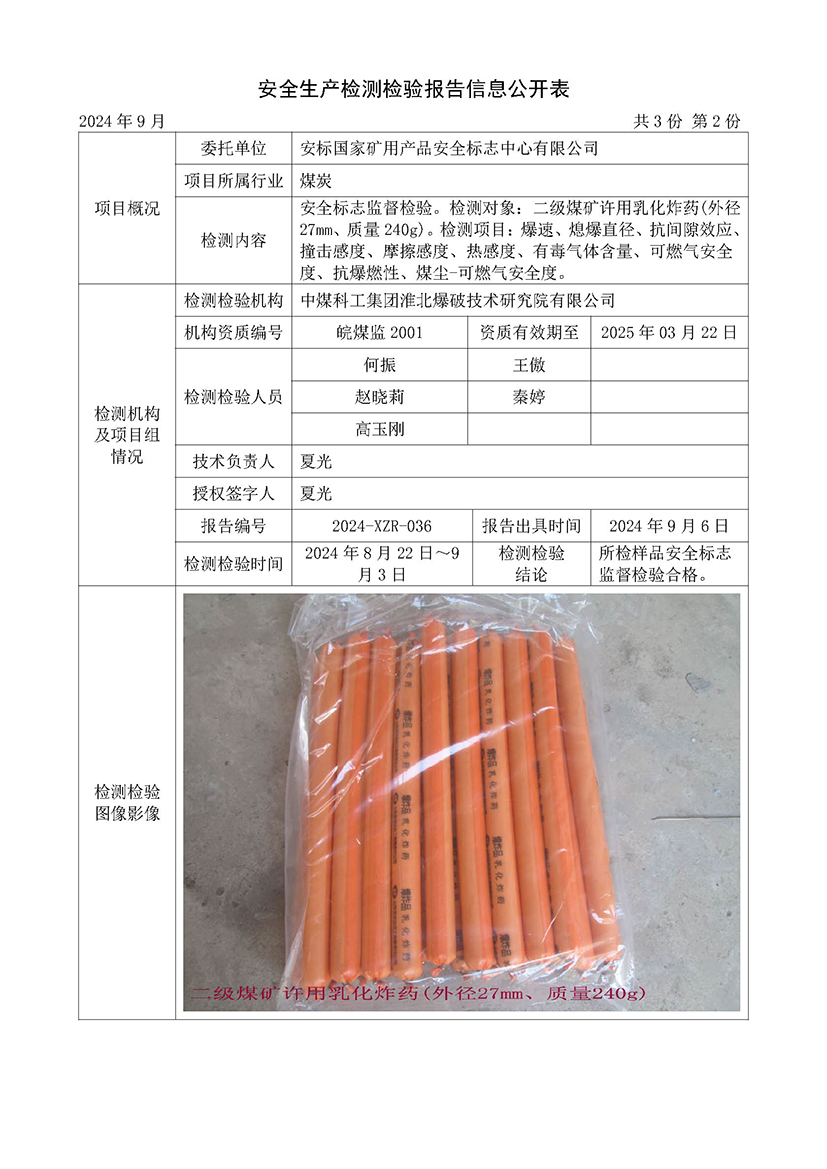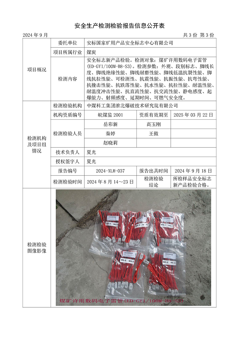 安全生产检测检验报告信息公开表(2024年9月份)