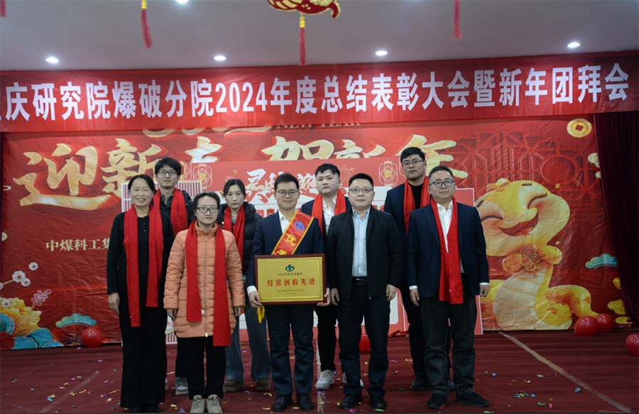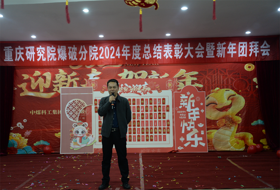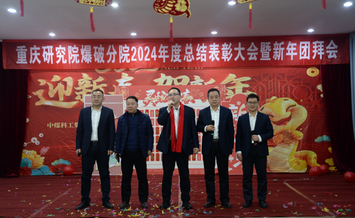 1月17日下午,爆破分院召开2024年度总结表彰暨新春团拜会。重庆研究院党委副书记、总经理李建国、总工办主任董钢锋、经营管理部主任陈东出席会议,与分院全体员工齐聚一堂、恭贺新春。
