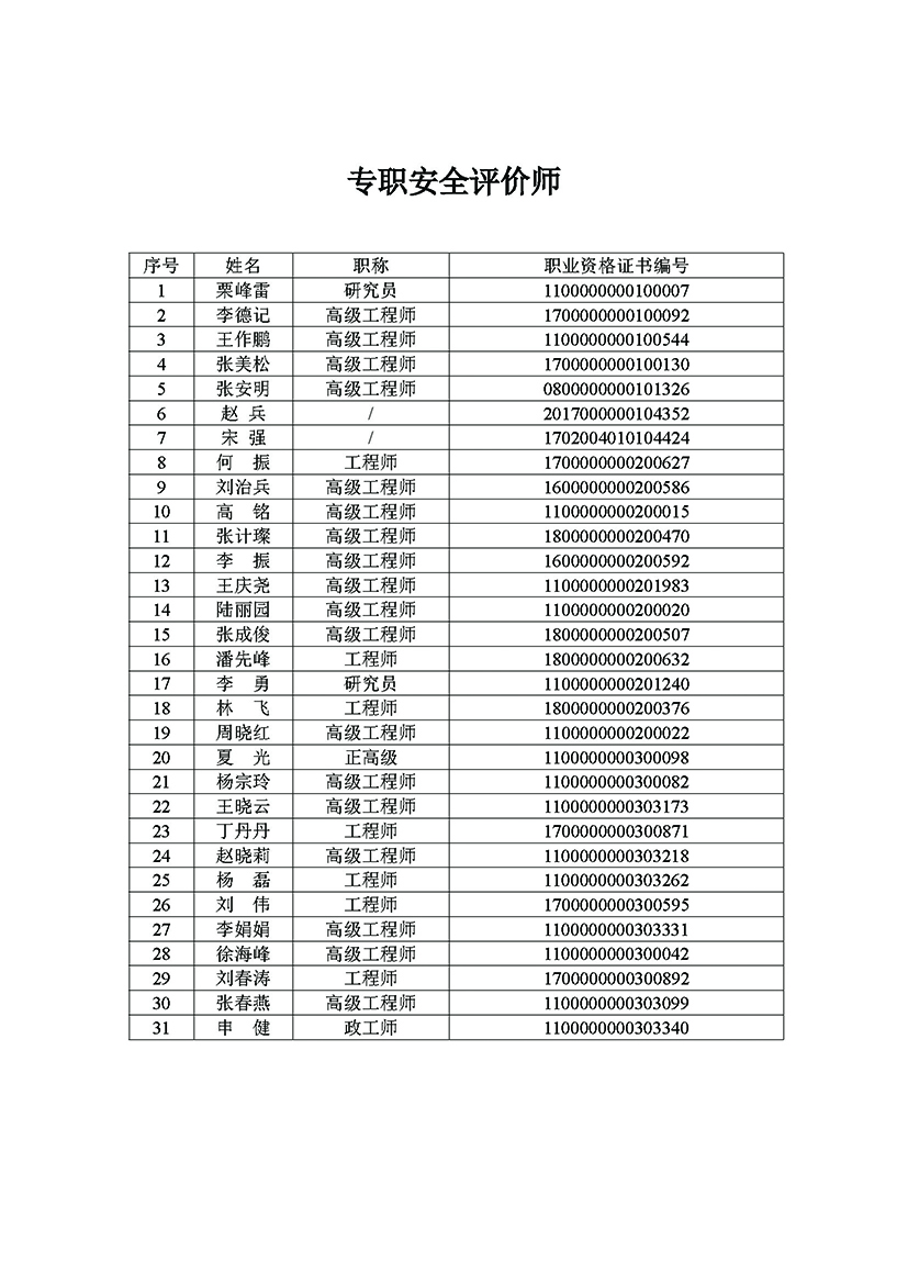 专职安全评价师